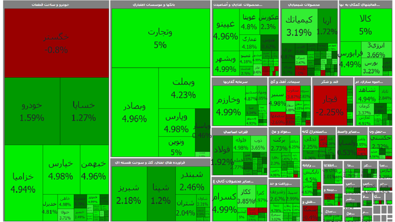 ۰۹:۱۴ – ۲۱ فروردين ۱۴۰۱ ۰۹:۱۴ – ۲۱ فروردين ۱۴۰۱ در آغاز معاملات ۲۱ فروردین امروز یکشنبه (۲۱ فروردین) شاخص کل بورس در ابتدای معاملات با رشد ۲ هزار و ۹۴۲ واحدی در ارتفاع یک میلیون و ۴۶۱ هزار واحد قرار گرفت.