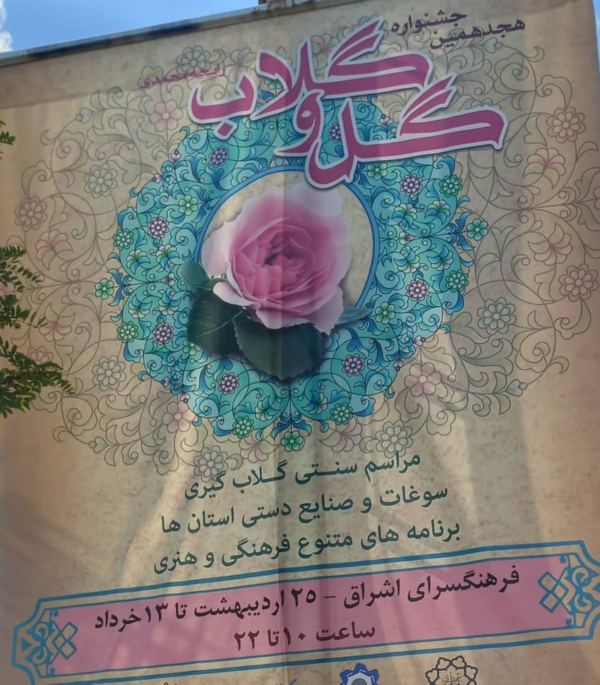 هجدهمین جشنواره گل و گلاب فرهنگسرای اشراق با دوسال وقفه به علت شیوع کرونا تا 13 خرداد در این فرهنگسرا در حال برگزاری است.