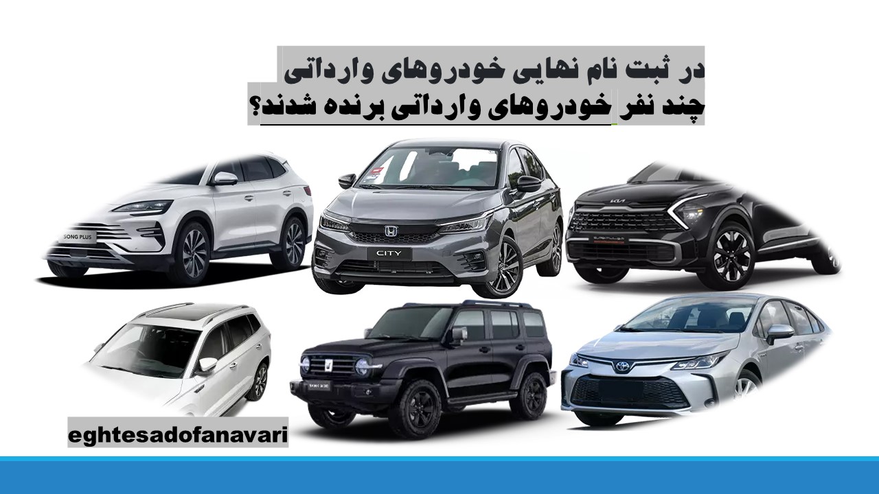 با اعلام نتایج قرعه کشی دور اخیر ثبت نام خودروهای وارداتی توسط مدیر طرح واردات خودرو وزارت صمت، مشخص شد از ۱۵۲ هزار نفری که در ثبت نام نهایی خودروهای وارداتی شرکت کردند، بیش از هشت هزار نفر برنده شدند.