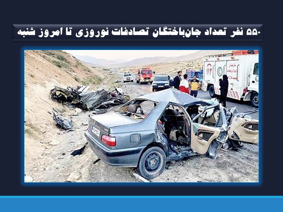 سرهنگ احمد کرمی اسد اظهار کرد: متأسفانه، تا صبح امروز (شنبه ۹ فروردین)، بیش از ۵۵۰ نفر از هموطنانمان در سوانح رانندگی جان خود را از دست دادهاند.