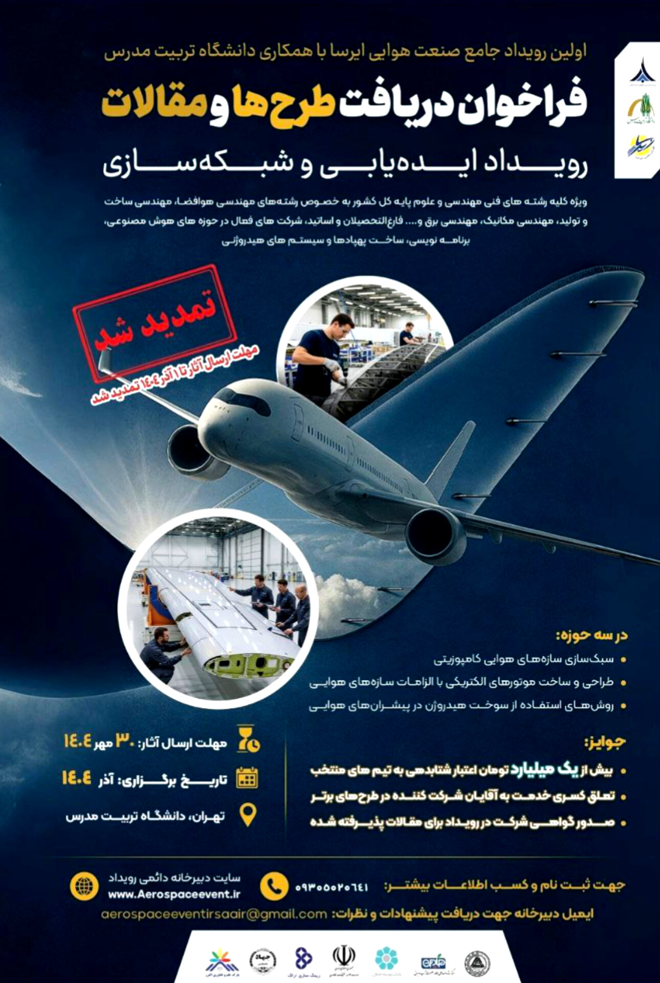 رویداد جامع صنعت هوایی ایرسا که با هدف شناسایی و حمایت از ایدههای نو در حوزه فناوریهای پیشرفته هوانوردی برگزار میشود، با استقبال گسترده پژوهشگران و نخبگان علمی مواجه شد و مهلت ثبتنام آن تمدید شد. این رویداد با همکاری دانشگاه تربیت مدرس، فرصتی بینظیر برای ایدهپردازان، پژوهشگران و علاقهمندان کلیه رشتهها فراهم کرده تا نقشآفرین آینده صنعت هوایی کشور باشند.