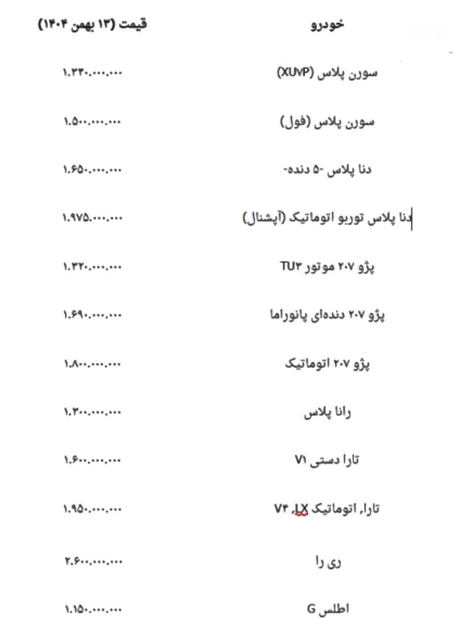 در ادامه، میانگین قیمت خودروهای پرتیراژ بازار ارائه شده است.