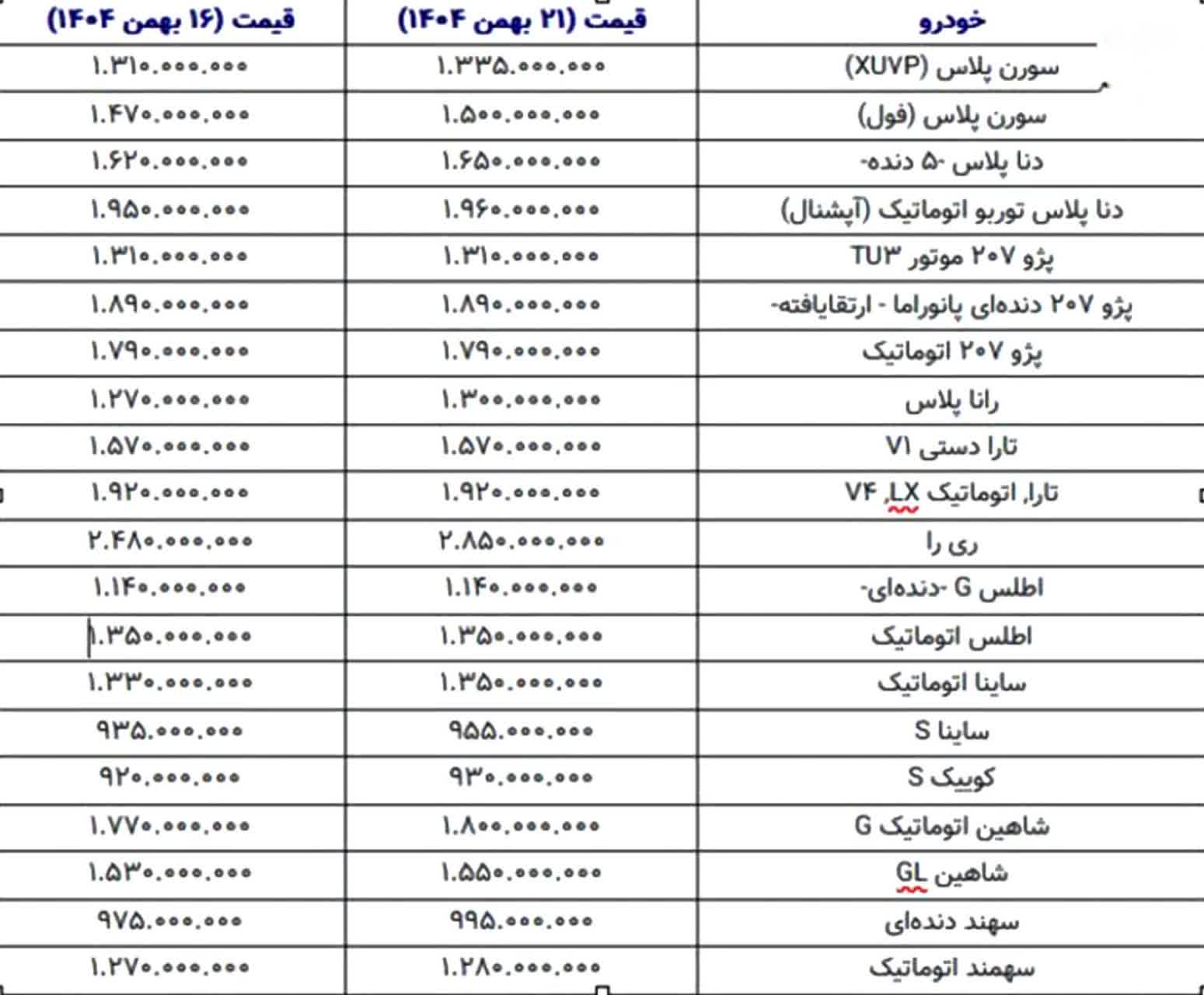 بررسی قیمتها میان ۱۶ تا ۲۱ بهمن نشان میدهد اکثر مدلهای داخلی افزایشهای اندک اما پیوستهای را پشت سر گذاشتند.